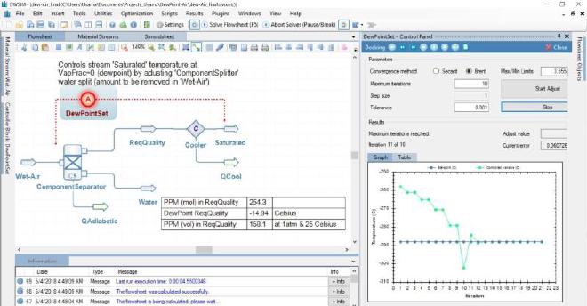 Rating dryers for varying quality of process Instrument air for dew-point control as per requirement (-15C). Plus using spreadsheet construction & air units understanding to achieve a PPM scale which can be measured via draeger-tubes. Finally the awesome optimizer!