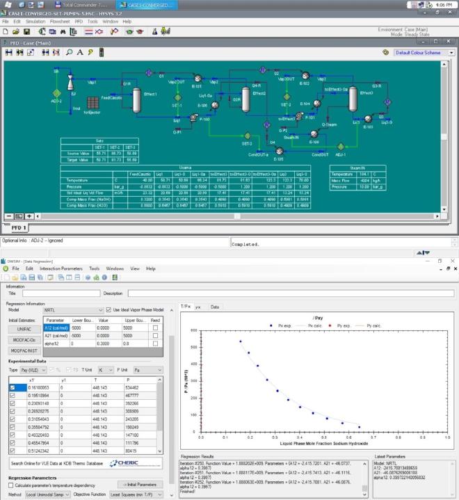 Regressing Binary Interaction Parameters of lye aqueous solutions. Setting up simulation for economizing steam requirements using HYSYS & DWSIM control blocks