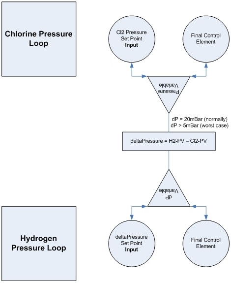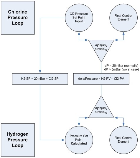 AKC method is cascaded where user inputs a set-point (SP) to Cl2 pressure loop & the SP of H2 pressure loop is automatically calculated via a predetermined offset addition.
