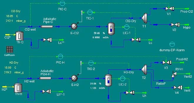 This sim study is purely directed for professionals working in chlor-alkali & Hydrogen fuel-cell sector, however, if user wants to experiment with some advance dynamic features like Flow-driven system specification, Event Scheduler, Alarm Manager, Remote Setpoint …do tag along!