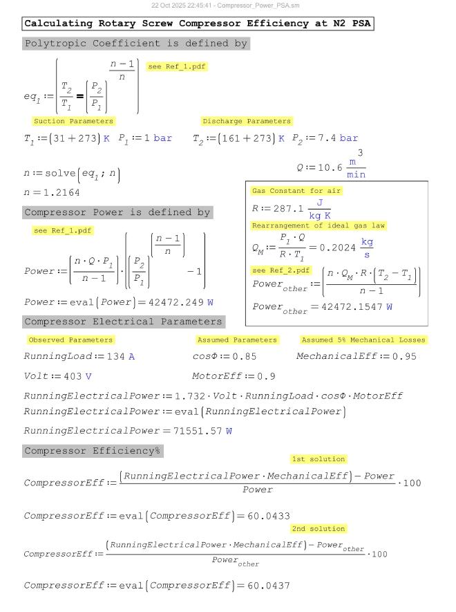 - Calculate polytropic power for compressor using n & observed volumetric flowrate