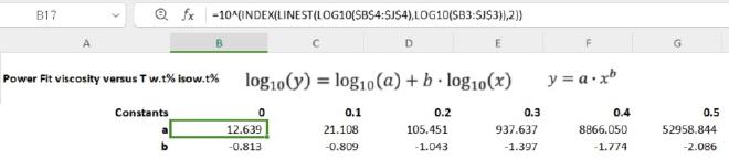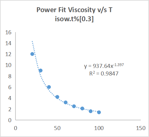 This completes our analysis & we are able to mathematically model viscosity using x3 math functions $$ \nu = \left| \begin{array}{l} f_1 (a, b, T) \\ f_2 (a, m_F) \\ f_3 (b, m_F) \end{array} \right. $$ We can now generate a table using above mathematical model & compare with experimental data.