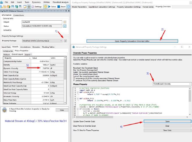 There is a python tutorial for overriding physical properties of material streams in DWSIM but how do to get the mathematical function that relates this physical property to state properties (Temperature / Pressure) of material stream as well as its composition if it’s a mixture. This is especially important if you are modelling strong ionic species like caustics or brines.
